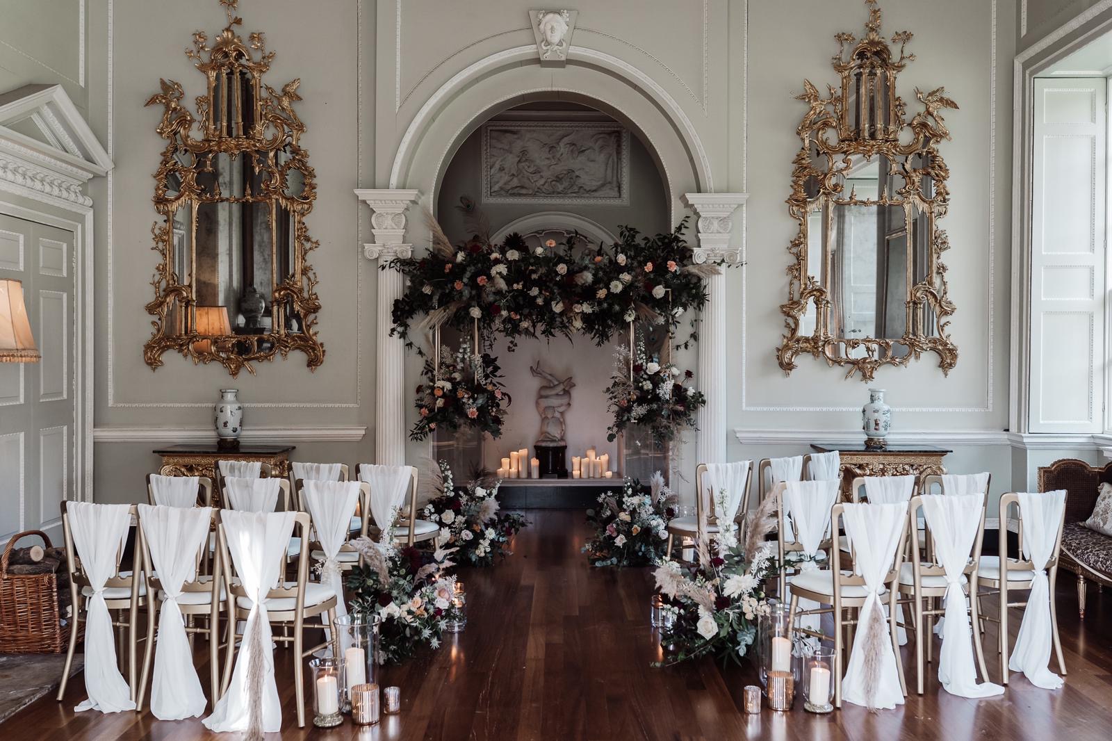 This stunning dramatic shoot took place at Newburgh Priory. Nestled in the heart of North Yorkshire, this wedding venue is available to hire exclusively as yours for the day. An elegant and intriguing venue steeped in history, the headless torso of Oliver Cromwell was laid to rest here!