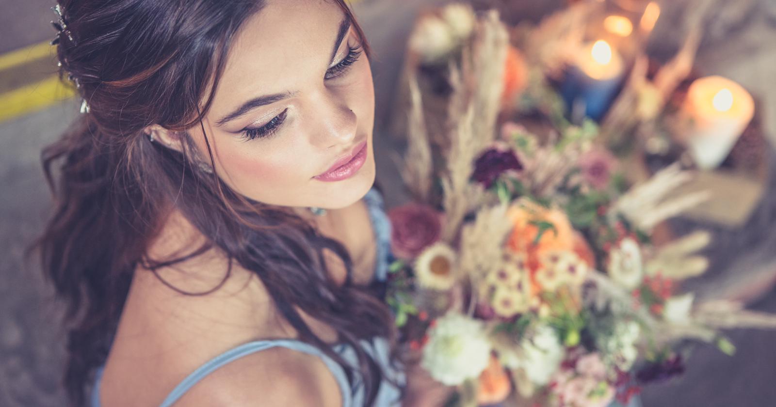 “I started out in film and TV and now specialise in bridal make up. The styled shoot was amazing to be a part of, we were able to be creative again and the whole team were a pleasure to work with. Every aspect came together beautifully and my inspiration for the makeup was romantic, rustic elegance to go alongside the gorgeous barn and dresses. To also compliment the styling and autumnal feel, I used warm tones with golds, rose golds on the eyes with a soft berry lip on Abigail and burnt red/brown tones on Anneka.
