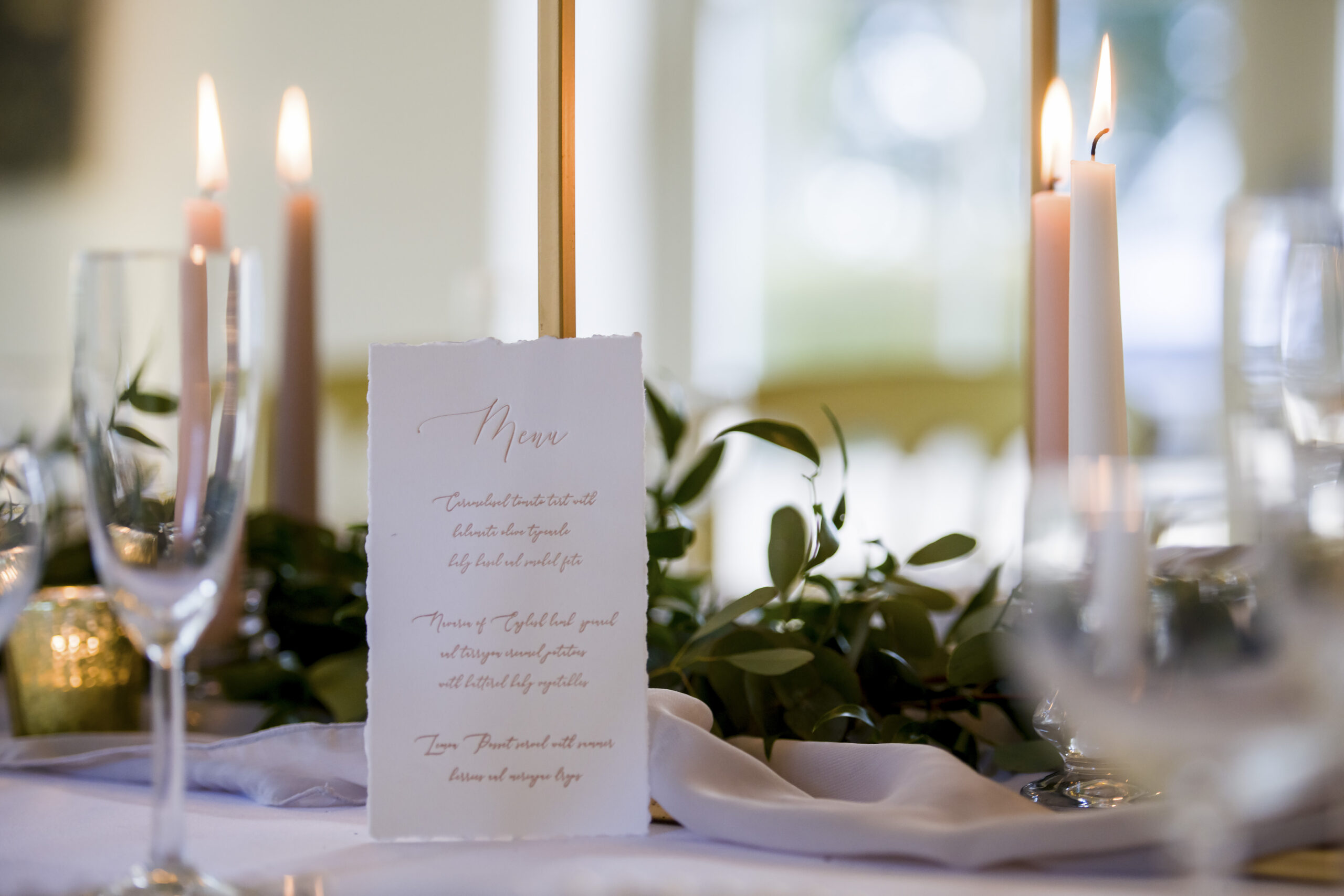-Menu cards – if your guests are all eating from the same menu consider having two or three menu cards on each table as opposed to a menu card per person.