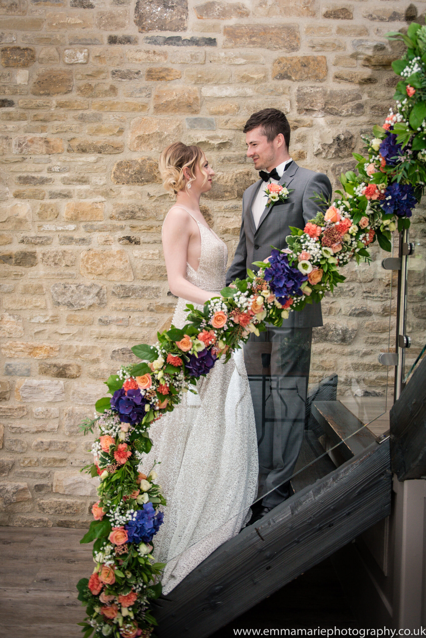 Depending on whether you’ve chosen a stately home with a grand sweeping staircase and gallery landing or you’ve opted for a character barn venue with stairs leading up to a lounge area, there’s lots of ways in which you can style out your staircase and we’re here to provide you with some inspiration and things to consider!