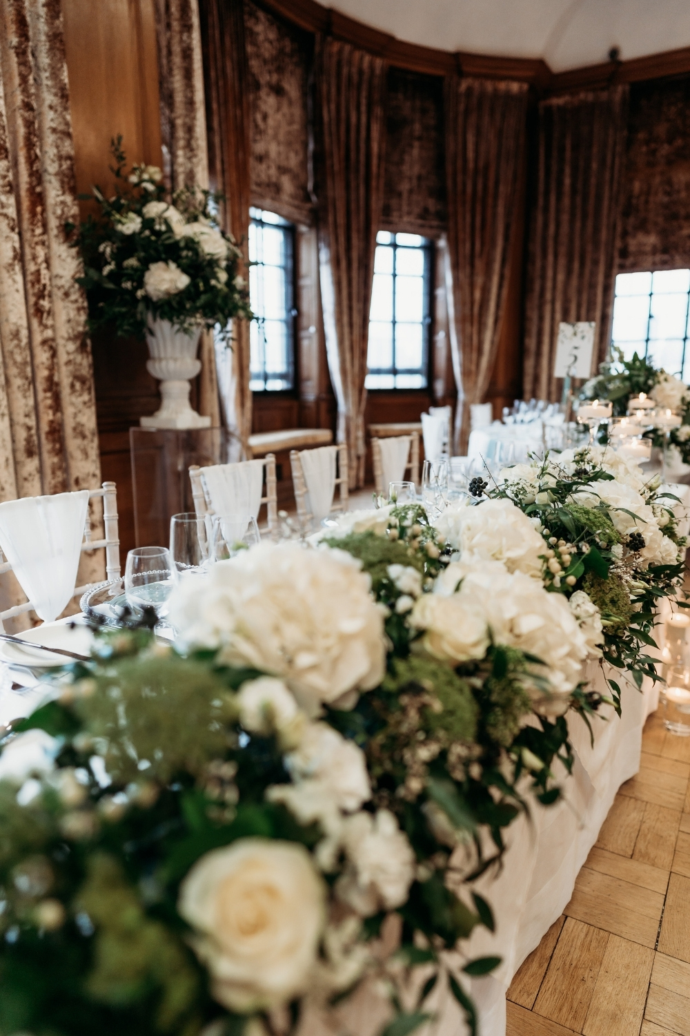 Shades of green are hitting the wedding world in a big way for 2023/24 and we couldn’t be happier because we can now combine two of our most favourite looks! Rather than opting for a traditional monochromatic design, why not add an edgier feel by the use of sage green, forest green or olive green. Load up your florals with stems of mixed foliage to add texture and depth to your centrepieces, fireplace decor and focal points!