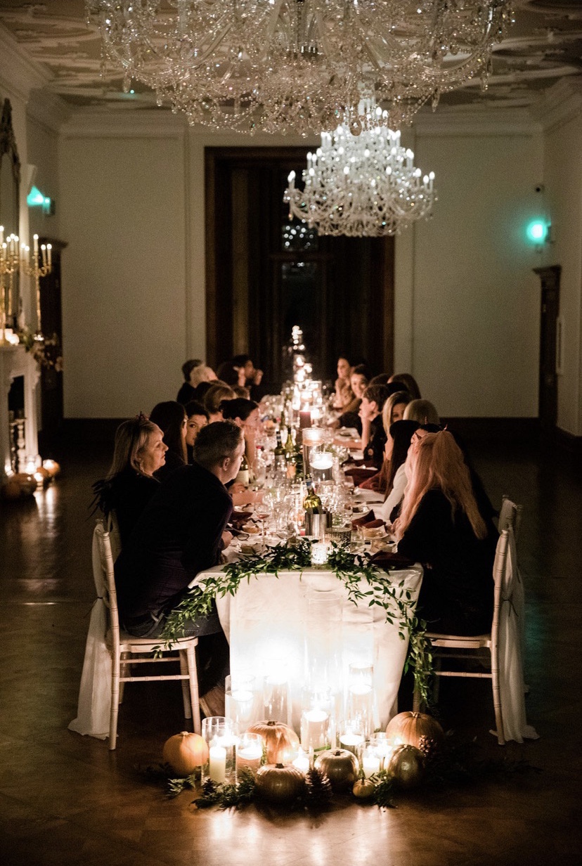 Guests were welcomed to the event with a bespoke mirror featuring personalised signage and we worked alongside the lovely Kathrine from Fleuradamo Floral Design to style the staircases, walkways and fireplaces with pumpkins, candlelight, foliage and florals.
