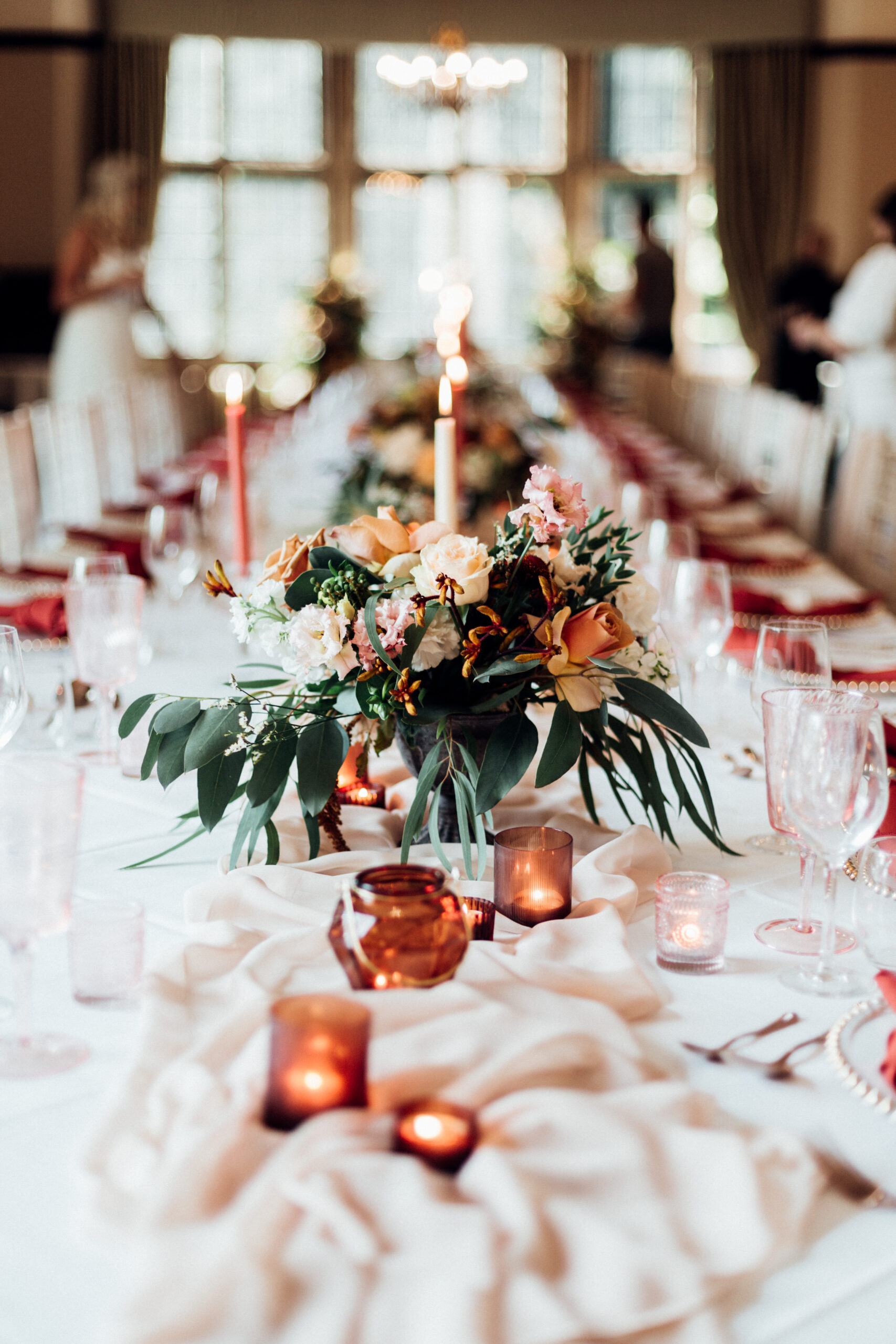 We love the warm and inviting tones of this rust and terracotta look at Moxhull Hall, perfect for an autumn wedding. This colour palette works with the season and sits alongside branches and leaves that are just starting to turn!